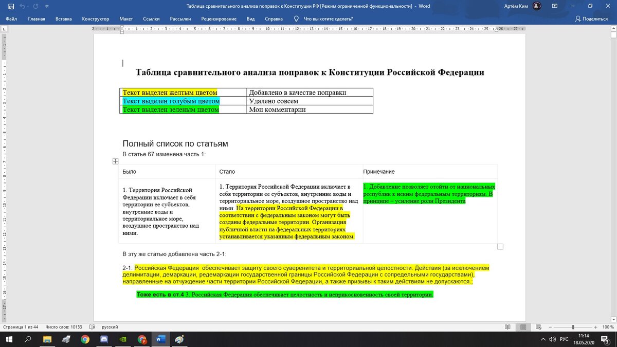 Таблица сравнительного анализа поправок к Конституции Российской Федерации