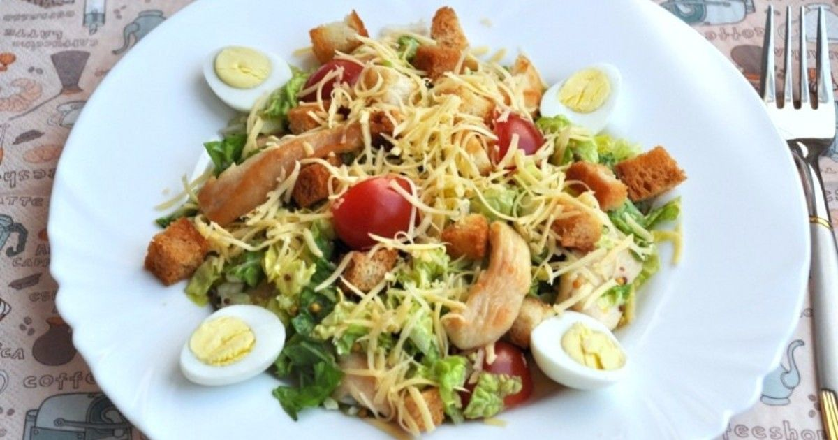 Сегодня мы будем готовить салат Цезарь с пекинской капустой. Что нам для этого понадобится. ↓ 1) Куриное филе 1.5 шт. 2) Помидоры 1 шт. 3) Белый хлеб 2 кусочка. 4) Пекинская капуста. 5) Сыр твердый. 6) Майонез 3 ст.л. 7) Соль 2 щепотки. 8) Перец черный молотой 2 щепотки. 9) Яйцо перепелиное 1шт. Как приготовить. ↓ Подготовить ингредиенты для создания салата, куриное филе отварить заранее, затем охладить. Хлебные ломтики нарезать на кубики и обсушить в духовке или на сковородке, превращая их в сухарики. Отварить перепелиное яйцо в течение 5 минут и очистить его от скорлупы. 2) Промыть пекинскую капусту, нарезать кругами и выложить на тарелку. Помните о том, что используется только зеленая верхушка овоща - белый низ (кочерыжка) удаляется. 3) Отварное куриное филе нарезать ломтиками и также выложить на тарелку. 4) Промыть помидор в воде, вырезать из овоща сердцевинку и нарезать крупными ломтиками. Выложить на слои курицы и капусты. 5) Присыпать нарезки хлебными сухариками. 6) По