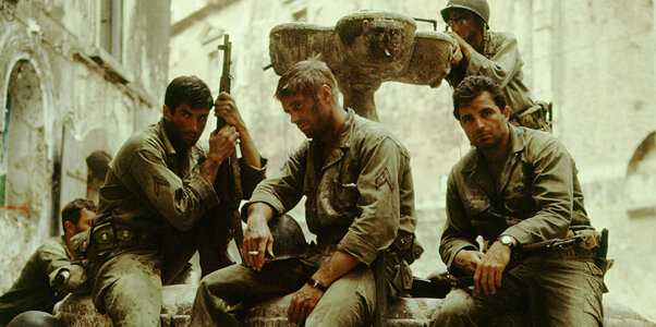 Если кратко. Вначале мы видим три минуты перестрелки в какой -то сицилийской деревушке. Ну а далее на протяжении всего фильма: отдых, алкоголь и женщины. Только меняются декорации по маршруту: Италия-Франция- Голландия. На картинке выше - единственный момент в фильме, когда мы видим уставшие лица американцев после того самого трехминутного "смертельного" боя...