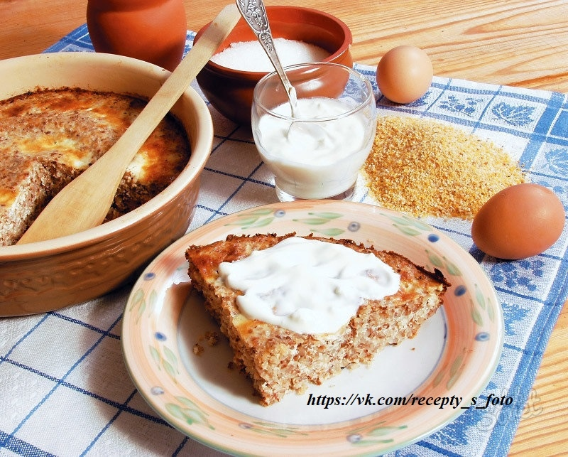 10. Через 50 минут испеченный гречневый крупеник вынимаем из духовки. Даём немного остыть.