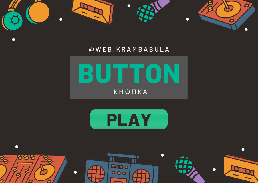 • Кнопка может содержать свой фон и текст, чаще текст кнопки как призыв к действию "Вперёд", "Назад", "В Галерею", "В магазин", "Купить" и так далее;