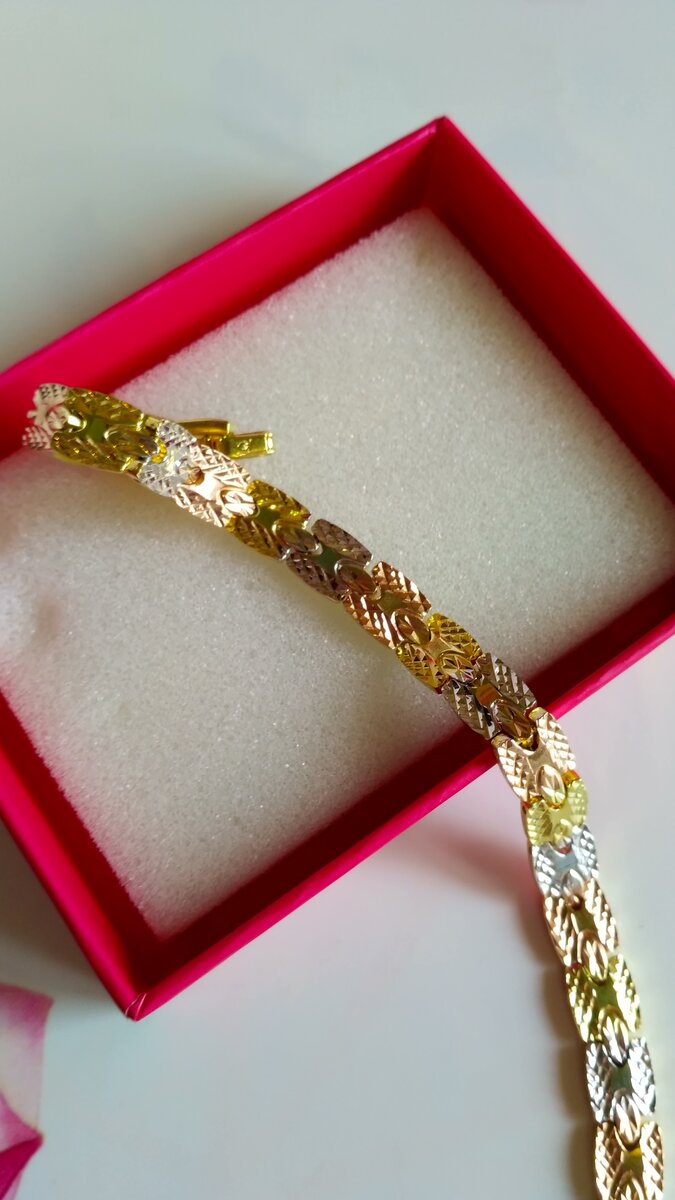 Мы с подругой заказали себе браслеты похожие на золотые уже год носим, выглядят, как новые в воде не темнеют, показываю фото. Сколько я золота и бижутерии потеряла летом особенно на пляже. Два года назад решила, что летом украшения носить не буду или заменю подделкой. В принципе вся бижутерия темнеет под воздействием воды, и я с этим смирилась, начала искать в нашем любимом магазине AliExpress подходящие безделушки. Тщательно смотрела на цену, что бы было не жалко потерять или утопить изделия, читала отзывы. Меня интересовало поведение металла, что бы ни сразу потемнел. Серебро чернеет, позолоченное изделие чернеет, золото оставлю внукам уже много растеряла. Нашла удивительные изделия не знаю из чего и как эти украшения делают они не чернеют! Я много в этом магазине купила бижутерии, расскажу подробнее в следующих статьях, а сегодня про браслеты на широкую руку. Подруга уже второй заказала для другой подруги. Цена была 450 рублей! (сейчас дороже) Мой как новый,