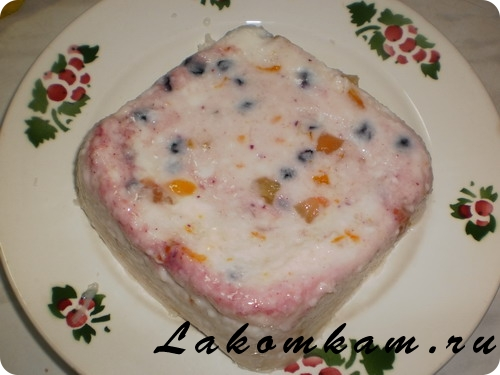 Десерт желе из кефира «Вундеркинд». Ингредиенты: половина литра кефира; 4 столовых ложки сахара; четверть пакетика ванильного сахара; 15-20 грамм желатина; наполнители по вкусу (я брала цукаты и изюм).