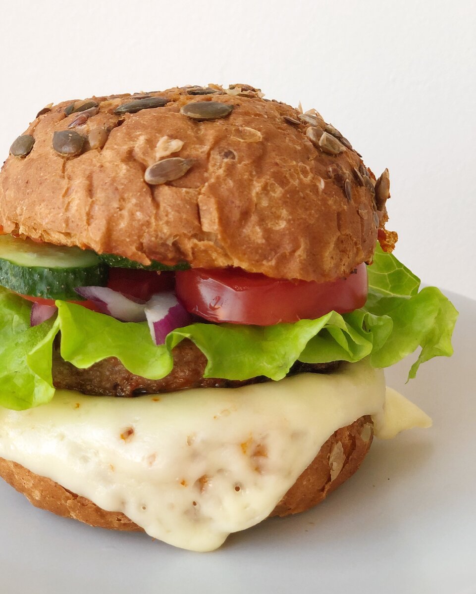 Дальше кладём кусочек сыра и сверху горячую котлету, чтобы сыр расплавился.