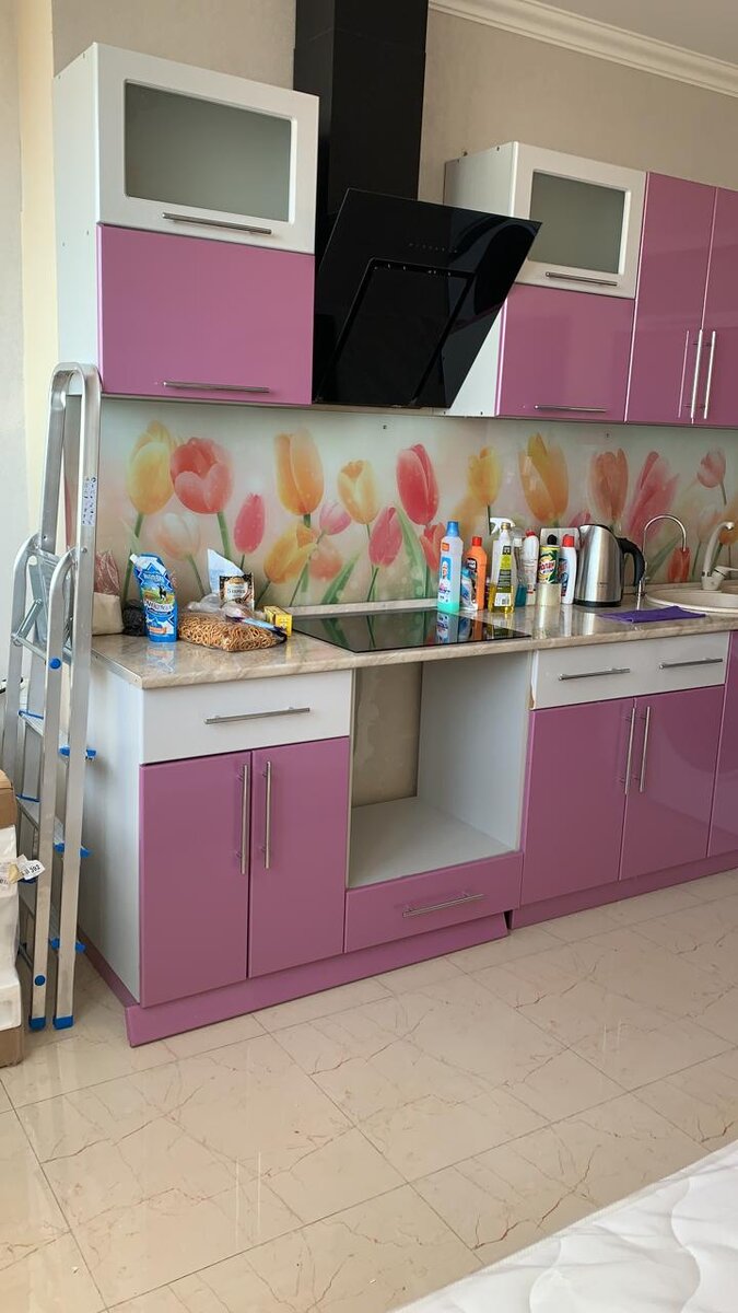 Не впечатляет заголовок, да я и не планировала. Удивительно то, что я полностью поменяла внешний вид комнаты. Первоначально, от прежних хозяев, мне достался тихий ужас. Мне не по вкусу... Стиральную машину я принципиально купила новую, так как мы с мужем ждали доченьку, так что не берите ее во внимание - могла бы остаться и прежняя. Я а поняла, что необходимо оборвать остатки обоев и избавиться от «тюльпанового» фартука, но для этого надо отодвинуть не отодвигаемое. Пригласив мастера, разобрали кухонный гарнитур и отдали его фасады в покраску. Стоимость зависит от площади Ваших фасадов, но у меня огромная и если бы я не меняла фурнитуру и некоторые ящики полностью, получилось бы 15 000 ₽. Итак, с мебелью решено. Далее я избавилась от старого ремонта на стене и купила паропронецаемую краску для ванн и кухонь (у меня Тикурилла, я за стопроцентное качество, но можно взять Дюлукс), а так же самую разрекламированную грунтовку, на всякий случай. Плюс 5 000 ₽. Если Вы оценили мои старания,