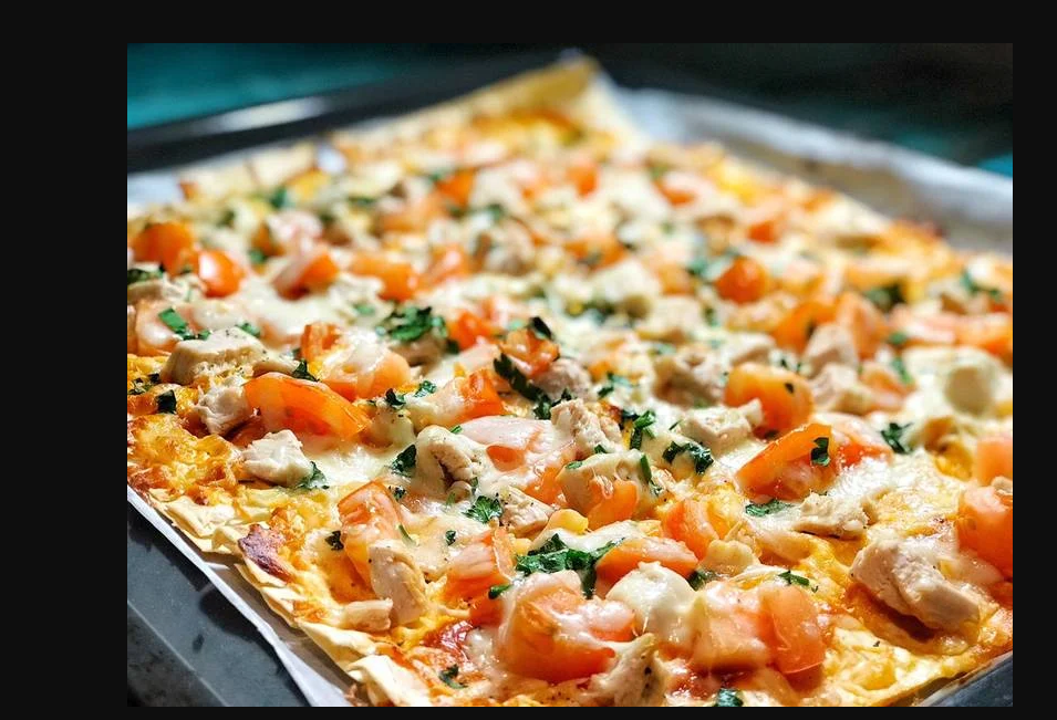 Быстрый рецепт приготовления вкусной пиццы )) Нам понадобится : 1. Лаваш 2. Кетчуп или томатная паста -25г. 3. Шампиньоны -30г. 4. Помидоры -30г. 5. Сыр -80г. 6. Начинка любая ( куриная грудка , ветчина , мясо ) Готовим : На противень или сковороду выкладываем лаваш 1/2 часть и посыпаем 1/2 части сыра . Складываем лаваш по пополам. Кетчупом смазываем верх лаваша , выкладываем начинку ( мясо , грибы и помидоры ) и посыпаем ставшим сыром . Отправляет в духовку на 8 минут 180 градусов . Приятного аппетита ))
