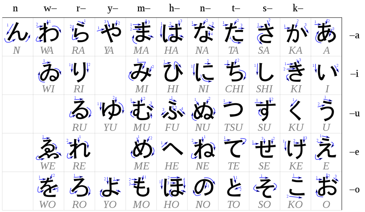 Итак, сегодня я покажу, как я подошла к запоминанию кан, и поделюсь "шпаргалкой" к первому столбцу хираганы. Но сначала ещё немного лирического отступления. Возможно, кто-то, как и я, долгое время думал, что японцы пишут справа налево, как, например, в иврите и арабском языках. Отчасти, так оно и есть. Давайте ещё раз взглянем на таблицу кан хираганы, которую я приводила в предыдущем посте: Столбец, с которого начинается изучение обеих азбук - крайний правый. Да, некоторые учебники отзеркаливают эти таблички, чтобы русскому человеку было сподручней, однако мне больше по душе каноничное расположение. Взялся за гуж - не говори, что тебе неудобно в японском порядке читать =/ Однако, когда я попробовала читать тексты на японских сайтах и книжках, выяснилось, что предложения начинаются вполне традиционно - с первого левого иероглифа. Я запуталась, что происходит... Оказалось, что всё просто. Предложения в печатных изданиях и веб-сайтах пишутся слева направо. Просто сам книжный текст в японс