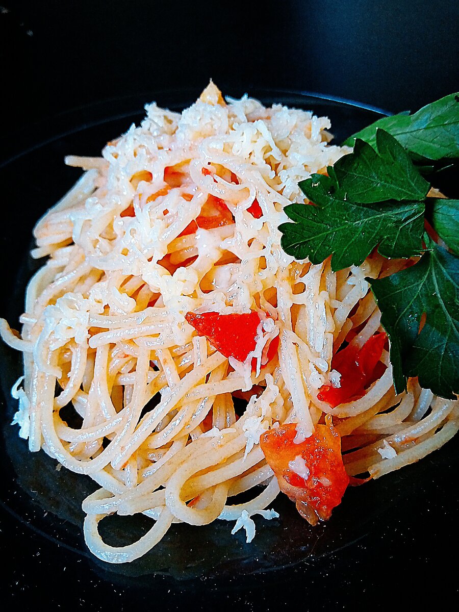 Выкладываем спагетти к соусу и перемешиваем. Посыпать сыром и опять перемешать.
