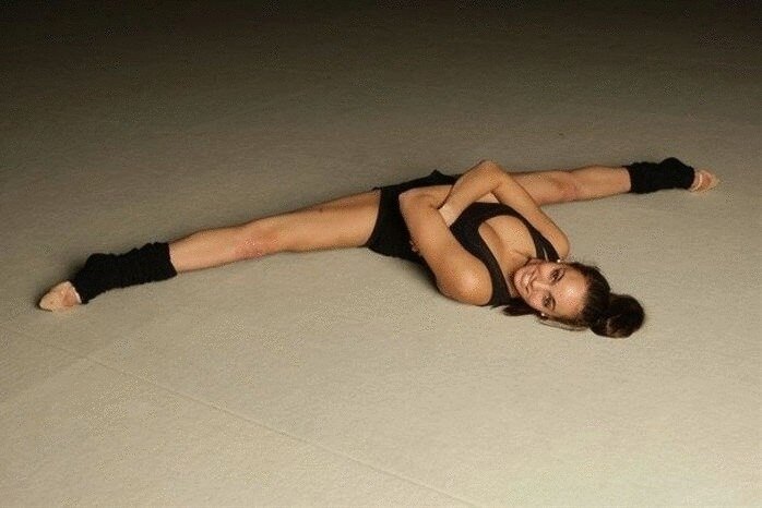 Разогрев: сделать 3 подхода по 20 приседаний с минимальным отдыхом, там, чтобы мышцы ног немного разогрелись. Вытягивать поочередно ногу вперед и тянуть носок на себя, чтобы немного потянуть коленные суставы и мышцы за коленом. Покрутить подъем стопы в одну и другую стороны по 20 раз. Сделать вращение колен (ноги вместе) влево и право по 20-30 раз. Медленное вращение тазобедренным суставом влево и вправо по 10-15 раз. Поставить ноги вместе и потянуться руками вниз, не сгибая при этом колени. Потянуть ногу рукой назад взявшись рукой за подъем стопы, стараясь держать ногу как можно ровнее. Теперь самое интересное: нужно сесть на пол раздвинув ноги максимально широко и придерживая ноги в коленях в прямом положении скручивать ноги поочередно вовнутрь в области суставной сумки вашего бедра, иными словами на уровне пояса, в месте где нога соединяется с тазом должно быть вращение ноги, как будто вы вкручиваете болт и раскручиваете его. Затем нужно постараться опустить локти на пол и подат