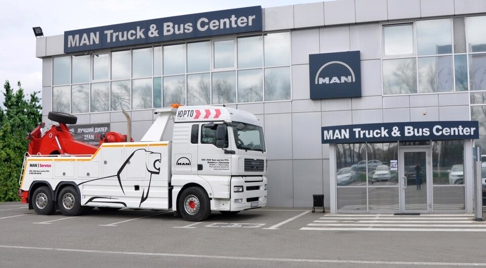 Компания ООО «ЮРТО-Трак», официальный дилер MAN на юге России, открыла новое направление услуг собственного грузового эвакуатора. Для этого MAN TGA 26.440.6Х2-2 оборудовали уникальной эвакуаторной надстройкой для буксировки грузовиков. Она снабжена двумя мощными лебедками на 15 и 25 тонн, аутригерами, гидравлической двухсекционной подъемной стрелой, брилем, а также комплектом полиспастов на 40 тонн с набором вилок, стяжек и скоб. Ссылка на интернет-портал "СпецТехника и Коммерческий Транспорт" (ST-KT.Ru)