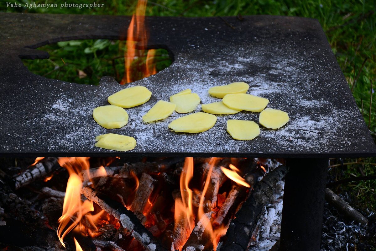 Вместо них были тонкие ломтики картошки, посыпанные крупной солью и подсушенные на раскаленной печке с двух сторон.
