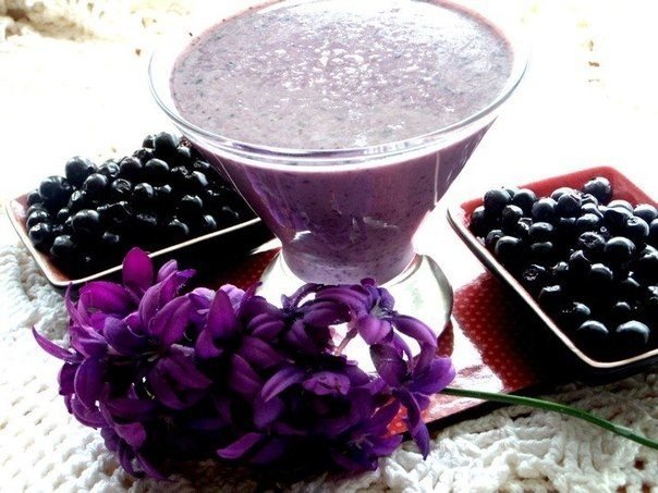 Молоко-250 мл Банан-1 шт. Сливки (10%)-2 ст.л. Шоколадный крем типа Нутеллы-1 ст.л. Черника свежая-горсть Ванильный сахар-щепотка. Приготовление: 1. Банан очистить,нарезать. 2. Отправить в шейкер для взбивания с молоком. 3. Добавить промытые ягоды,ваниль. По желанию можно добавить сливок. Дети очень любят шоколадную пасту,поэтому на этот раз угодим им и добавим ложечку. 4. Взбиваем всё блендером и разливаем по бокалам. Вкусное дополнение к завтраку готово.