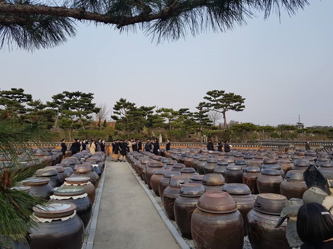 Для тех, кто ещё недавно погрузился в корейский мир и ещё не очень хорошо знаком с историей и национальными особенностями страны восходящего солнца, скажем, что эти кувшины - специальная посуда для хранения кимчи и другой ферментированной продукции, а также специальных соевых соусов, паст и уксусов. В небогатых семьях таких кувшинов было мало и хранились они, как правило, на заднем дворе. У семей зажиточных и богатых были целые "фермы" таких кувшинов. Неудивительно, что королевская "ферма" такая огромная и просто поражает своими размерами и количеством кувшинов.