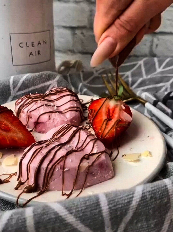 Нам понадобится: По желанию можно добавить: Желатин нужно растворить в небольшом количестве воды и растворить его в микроволновке (примерно по 10 секунд до жидкого состояния) Мягкий творог смешаем с сахарозаменителем и клубникой. Затем аккуратно добавим ранее растопленный желатин. Теперь творожную массу нужно разлить по формочкам и оставить в холодильнике минимум на 1 час до застывания. Готовый десерт можно украсить по желанию шоколадом и кокосовой стружкой. Он получается очень легким, нежным и вкусным. Приятного аппетита ;)