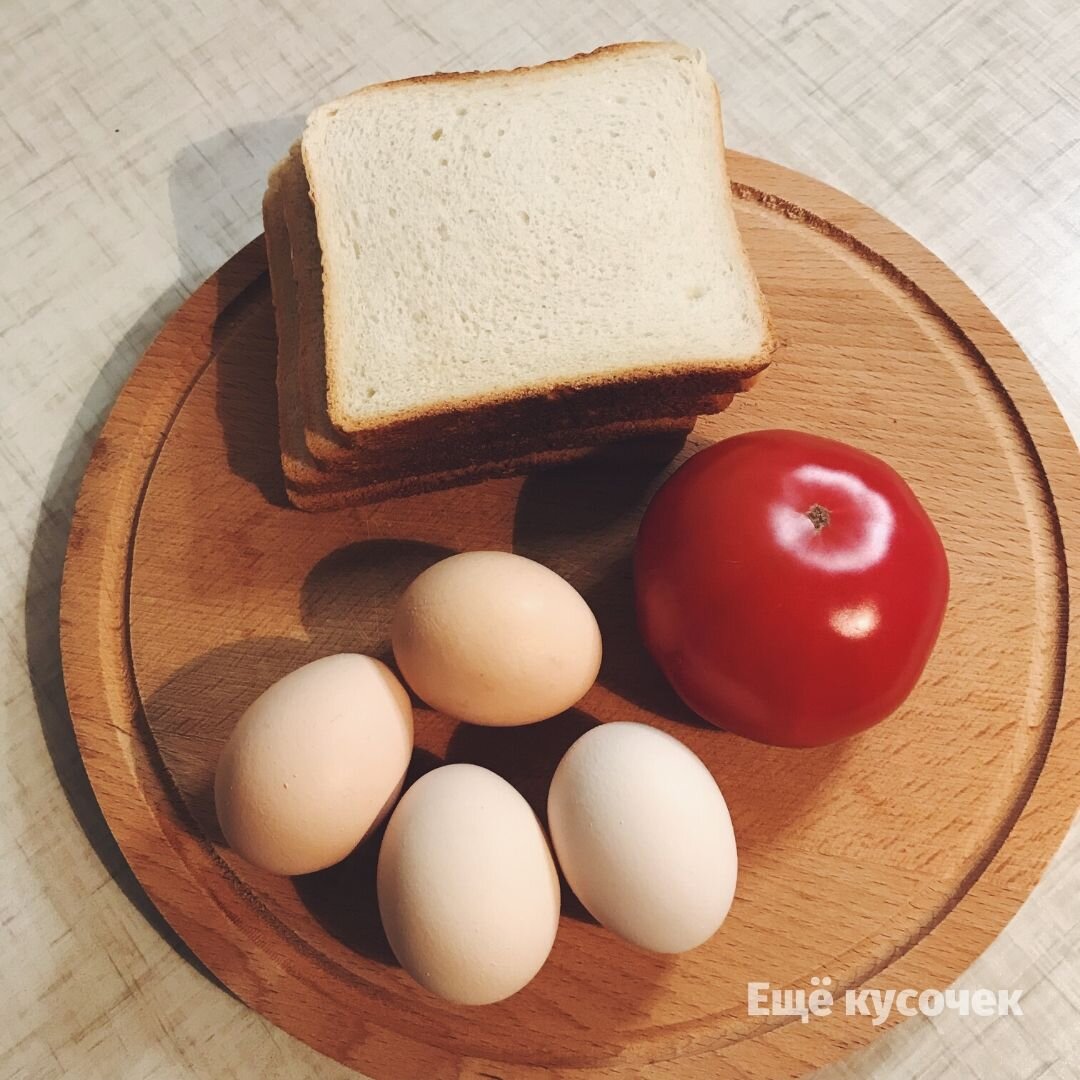 Привет, кулинары! Меня зовут Дима, и я очень люблю поесть, но не люблю париться с готовкой. Думаю и у вас нет времени стоять у плиты, особенно когда ты опаздываешь на работу или собираешь ребенка в школу. Поэтому сегодня я приготовил очень вкусный завтрак всего из 3 ингредиентов за 5 минут. Как вы уже догадались мы будем жарить яйцо в хлебе. ⠀ Нам понадобиться: ВСЁ! Не удивляйтесь, завтрак получится бомбезный. ⠀ И так, начинаем готовить. Шаг 1. Для начала нам нужно подготовить наш хлеб. Для этого вырезаем в каждом кусочке квадратное отверстие. По краям оставляем примерно по 1 см. ⠀ Шаг 2. Для завтрака нам понадобится несколько колечек помидора. Аккуратно нарезаем его. Предварительно помыв овощ. ⠀ Шаг 3. Смажьте сковороду небольшим количеством масла. Я взял сливочное (по моему так вкуснее). После того как сковородка нагреется, кидаем наши кусочки хлеба и обжариваем с одной стороны. ⠀ Шаг 4. После того как хлеб подрумянится с одной стороны, переверните его на другую сторону и сразу з