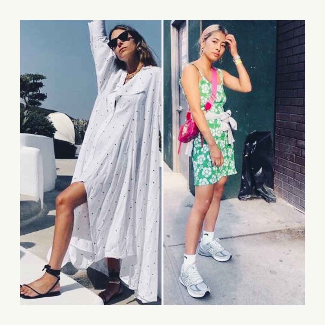 Этим летом ретро-кроссовки будут очень популярны. Они дополнят любое платье от мини с цветочным принтом до ярких макси-платьев.