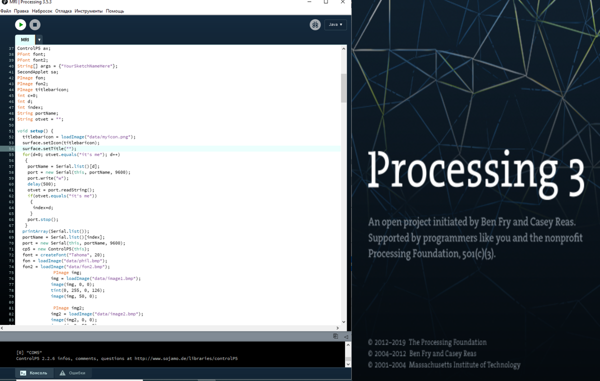 В среде программирования Processing при работе с Ардуино необходимо использовать COM порт. Не всегда хочется лазить в системе и править исходный код программы для того, чтобы прописать в ней именно тот Com порт, к которому подключена Ардуино в данный момент. Готовых решений найти не получилось, поэтому написал следующий код: import processing.serial.*; Serial port; String portName; String otvet = ""; int d; int index; void setup() { for(d=0; otvet.equals("it's me"); d++) { portName = Serial.list()[d]; port = new Serial(this, portName, 9600); port.write("w"); delay(500); otvet = port.readString(); port.stop(); } printArray(Serial.list()); portName = Serial.list()[d]; port = new Serial(this, portName, 9600); } Так перебирая порты отправляю в них "w", и ожидаю от него нужного мне ответа "it's me". в случае если "правильный" ответ не получен, порт останавливается и переходим к следующему. Таким образом удалось прописать и проверить автоопределен