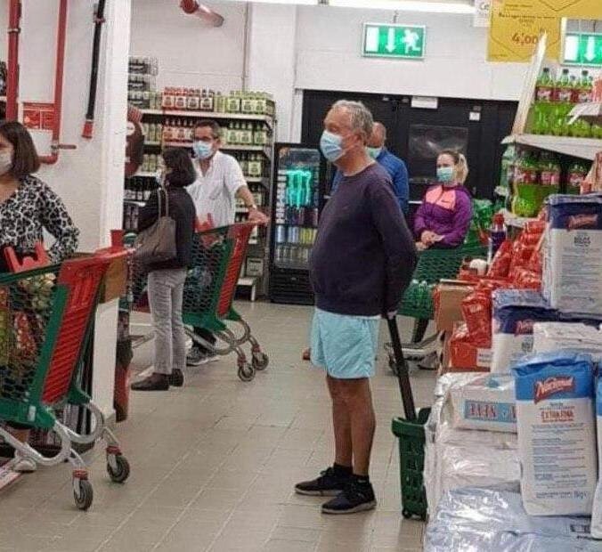 Человека в шортах зовут Марселу де Соуза. Он просто стоит в очереди за продуктами. А ещё он президент Португалии.