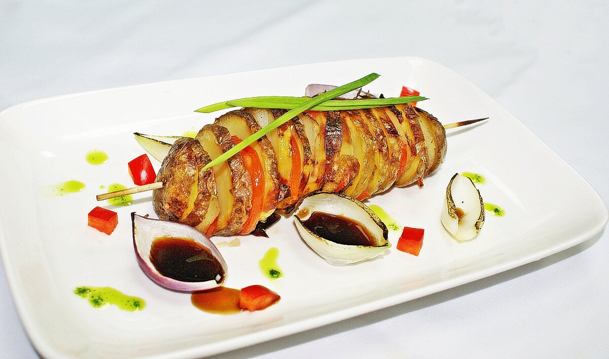 Самое простое блюдо, при этом сытное и быстро готовиться Понадобиться : 4 больших картошки 1 средний помидор 1 баклажан 1 упаковка бекона. Картошку чистить не надо, только хорошо помыть. Нарезаем её каждый ломтик примерно 1 см, не больше, нарезаем помидор , так же нарезам и наш баклажан. После чего насаживаем на шпажки ломтик картошки, ломтик помидорки, ломтик картошки, ломтик баклажана , потом опять картошку. Формируем примерно 4 шпажки овощных. А для детей мы делаем с беконом, но там мы картошку только надрезаем с интервалом 0,5 см и в эти надрезы вставляем ломтики бекона и только после этого надеваем на шпажку, бекон когда зажаривается, отдает аромат картошки. Быстро и просто . а главное вся семья довольная)