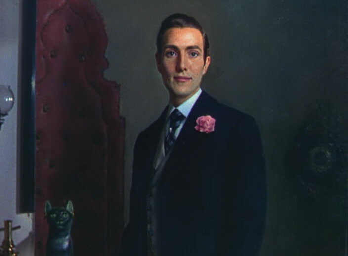Как вы видите, он почти соответствует уже озвученным ранее условиям задачи: в полный рост, на фоне интерьера. Хорошо и похоже написано лицо. Сам фильм черно-белый, но когда Дориан впервые видит свой портрет, этот кадр расцвечен вручную. И это производит действительно впечатление чуда.