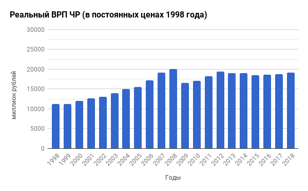 3 марта 2020 года вышли данные по ВРП Чувашии за 2018 год. Ошибся в прогнозах на год на 0,1 %, что, в принципе, несущественно. Валовой региональный продукт по Чувашской Республике за 2018 год составил 297774,1 млн. рублей или 101,9% к 2017 году в сопоставимых ценах. Объем валового регионального продукта на душу населения составил 242634,0 рубля. 2018 год стал одним из самых успешных годов за последние 10 лет. Но стагнация, которая началась в 2008 году все еще продолжается до сегодняшнего времени. По предварительным подсчетам, рост ВРП Чувашии за 2019 год составит от 1 до 1,5%. Темпы роста ВРП все еще низкие. Они не позволяют достичь показателей 2012 года. По отраслевой структуре успешнее всех развивались - связь и информация, а так же банковско-финансовая сфера. Хуже всех себя чувствовали и происходило снижение: в научно-технической сфере, в здравоохранении и в оказании социальных услуг (сейчас пожинаем плоды), в сфере развлечений, в спорте и культуре, в оказании администрати