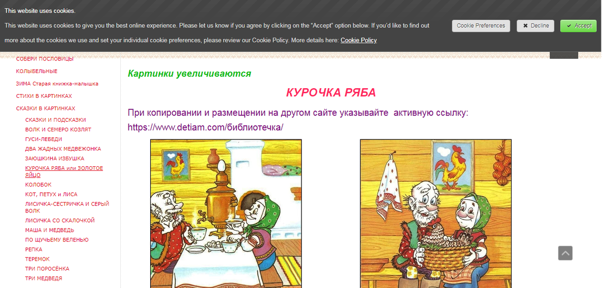 Уважаемые родители! Вы прочитали своему ребёнку мудрую сказку ? Картинку можно увеличить для просмотра, нажав на неё. Не жалейте время на детей, Разглядите взрослых в них людей, Перестаньте ссориться и злиться, Попытайтесь с ними подружиться. Постарайтесь их не упрекать, Вовремя послушать и понять, Обогрейте их своим теплом, Крепостью для них пусть станет дом. Вместе с ними пробуйте, ищите, Обо всем на свете говорите, И всегда незримо направляйте. И во всех делах им помогайте. Научитесь детям доверять - Каждый шаг не нужно проверять, Мненье и совет их уважайте, Дети – мудрецы, не забывайте! И всегда надейтесь на детей, И любите их душою всей Так, как невозможно описать. Вам тогда детей не потерять! В чём мудрость этой сказки русской??????????? Что за яичко такое крепкое?????????????? Какая мышка?????? Норушка? Или компьютерная мышка????????? А простое яйцо Вас дедушка и бабушка устроит??????? Я думаю их устроит ... Как обучать детей чтению Вы найдёте множество советов в интернет БЕСП