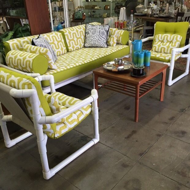 Тут понадобятся уже уверенные навыки соединения отдельных отрезков труб. В зависимости от вашего желания и степени подготовки, изготовить можно как простенькую детскую табуретку, так и удобный стул для взрослых, или даже кресло. После того, как будет готов каркас, делается сидение. Его можно сплести из ниток, каната, или же использовать плотную ткань. Потом сверху можно положить мягкие подушки. Освоив технику изготовления, можно будет соорудить для дачи практически всю мебель.