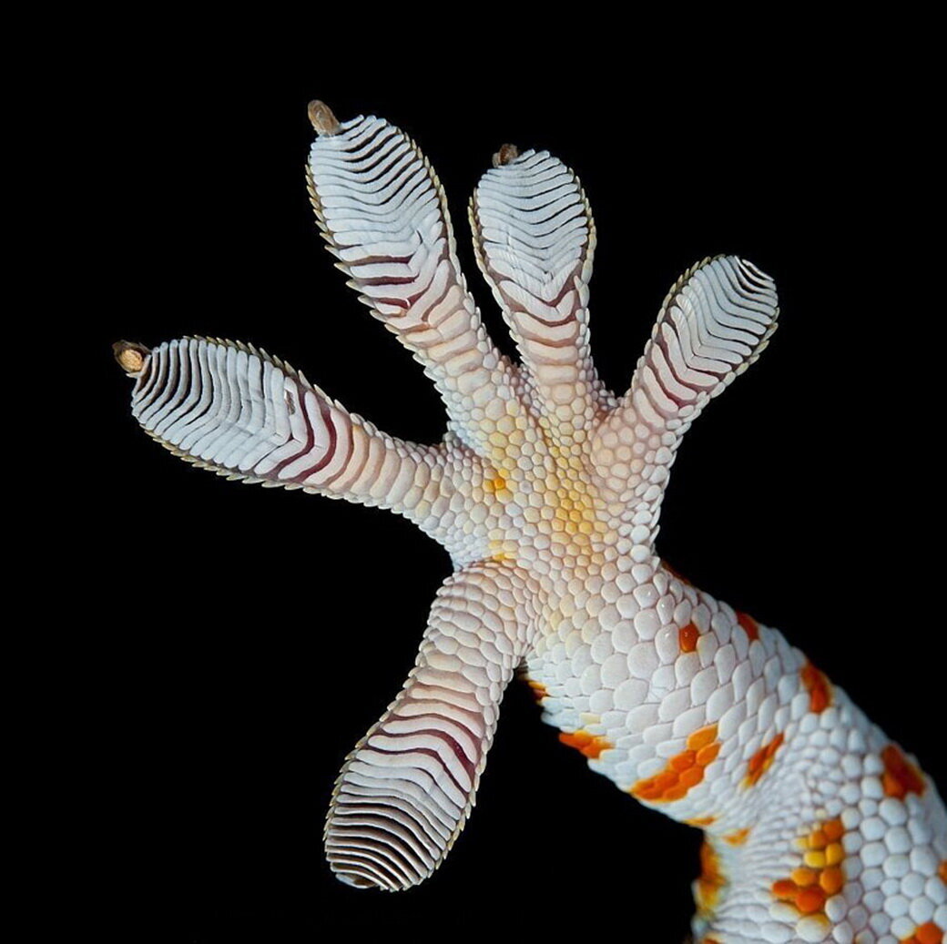 Гекконы итересны своими удивительными лапками, благодаря которым они способны взбираться по гладкой стене со скоростью 1 м в секунду, карабкаться по крутым склонам и даже бегать вниз головой по потолку из полированного стекла. Находясь на стене, гекконы могут поддерживать вес тела всего одной лапкой. Секрет прилипания гекконов стал темой для многих научных исследований. Экстраординарная способность гекконов оставалась загадкой со времен Аристотеля, который наблюдал за ними еще в 4 столетии до н.э. Эти ящерицы могут перемещаться таким образом благодаря растопыренным, похожим на ладони ступням. На пальцах у гекконов есть маленькие гребни, покрытые тонкими волосками (щетинками). Эти пальцы прилипают практически к любому материалу (древесина, стекло, металл, гранит) при любых условиях (даже в вакууме или под водой), и при этом пальцы геккона никогда не изнашиваются, не загрязняются и не прилипают случайно к ненужным местам. Поиск разгадки этих удивительных способностей занял почти 100 лет