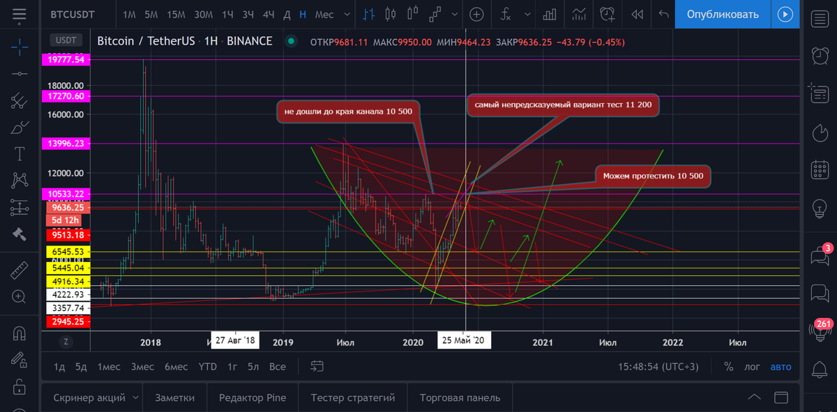 Добрый день дорогие читатели! Разберем Bitcoin в долгосрочной "перспективе" Биткоин с 2018 года находится в нисходящем тренде! В 2019 году был рост и падение, связывают его с "пирамидой" PlusToken Проекту удалось привлечь более 200 000 тыс. Биткоинов ( это примерно 1% общей эмиссии всех биткоинов) 789 000 ETH 26 млн. EOS PlusToken предлагал инвесторам по разным данным 10% до 30% в месяц после внесения 500 долларов в цифровые валюты. PlusToken, с открытыми торгами на нескольких популярных китайских биржах, достиг капитализации в $17 млрд. Почему Биткоин не пошел выше 14 000 $ 11 февраля 2020 года . Сервис мониторинга (Whale Alert )заметил перемещения 11 999 BTC . СМИ сообщили, что в движение пришли 11 999 BTC из кластера китайской пирамиды Plustoken, которая уже долгое время оказывает давление на рынок Далее биткоины дробились в кошелька миксерах по 1-5 втс. После собирались на разных кошелька по 300-400 втс. Все это было сделано для того,чтобы различные сервисы слежки