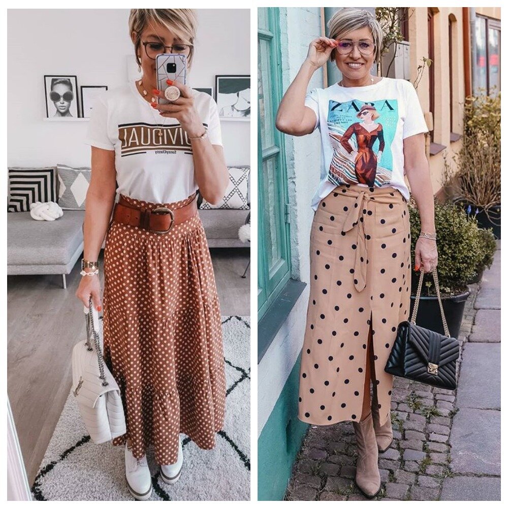Красивый стиль можно создать с помощью обычной юбки макси + футболки. В вашем гардеробе скорей всего найдется и то, и другое.
