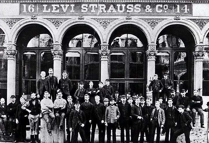 Именно тогда уличный торговец из Нью-Йорка, называвший себя Леваем Страуссом прибыл в Сан-Франциско. Ливай привез с собой большую партию брезента для палаток и чехлов на тачки, но торговля шла вяло, и его надежды на хорошие заработки не оправдывались. Один приятель объяснил Страуссу, что в Калифорнии не слишком нужен брезент, зато необходимы прочные, удобные рабочие брюки. Таким образом, мелкий торговец из Нью-Йорка превратился в изготовителя готовой одежды и текстильного промышленника. Его одежда имела колоссальный успех, и он с зятем основывает акционерное общество, которое процветает все больше и больше.