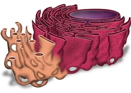 Эндоплазматическую сеть (ЭПС), или эндоплазматический ретикулум (ЭПР), удалось обнаружить только с появлением электронного микроскопа. ЭПС есть только в эукариотических клетках и представляет собой сложную систему мембран, образующих уплощенные полости и трубочки. Все вместе это выглядит как сеть. ЭПС относится к одномембранным органоидам клетки. По своему строению ЭПС представляет собой множество парных параллельных мембран, пронизывающих почти всю цитоплазму. Пара мембран образует пластинку (полость внутри имеет разную ширину и высоту), однако гладкая эндоплазматическая сеть в большей степени имеет трубчатое строение. Такие уплощенные мембранные мешочки называют цистернами ЭПС. Рибосомы, расположенные на шероховатой ЭПС, синтезируют белки, которые поступают в каналы ЭПС, созревают (приобретают третичную структуру) там и транспортируются. У таких белков сначала синтезируется сигнальная последовательность (состоящая преимущественно из неполярных аминокислот), конфигурация которой с