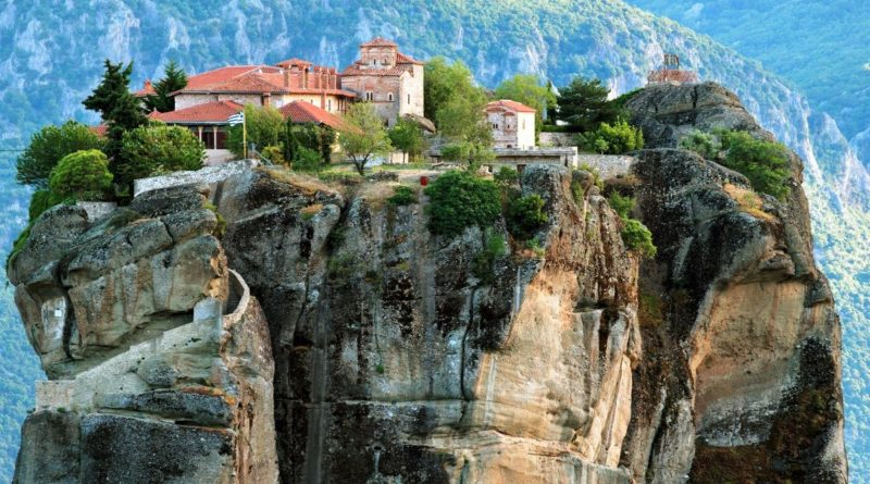 Метеоры — одно из самых загадочных и потрясающих зрелищ богатой достопримечательностями Греции. «Парящие в воздухе» — именно так переводится с греческого «Метеор». Монастыри Метеоры, примостившиеся на верхушках совершенно неприступных отвесных каменных шпилей, рассеяны по Фессалийской равнине к северу от города Каламбака. Они построены на скалах, состоящих из смеси песчаника и обломочной горной породы, достигающих в высоту 600 метров над уровнем моря, в горах Фессалии на севере Греции. 60 млн. лет назад эта часть Греции была дном океана. Потом вода стала уходить, постепенно вымывая песок и другие отложения из более твердых пород, и со временем над цветущей Фессалийской долиной остались стоять несколько десятков гигантских каменных «пальцев» от 300 до 500 метров высотой. Первые религиозные общины появились здесь в конце X века, наряду с Афоном, как один из центров православного монашества в Греции. Когда в XIII веке начались нашествия в Грецию крестоносцев и завоевателей из соседних г