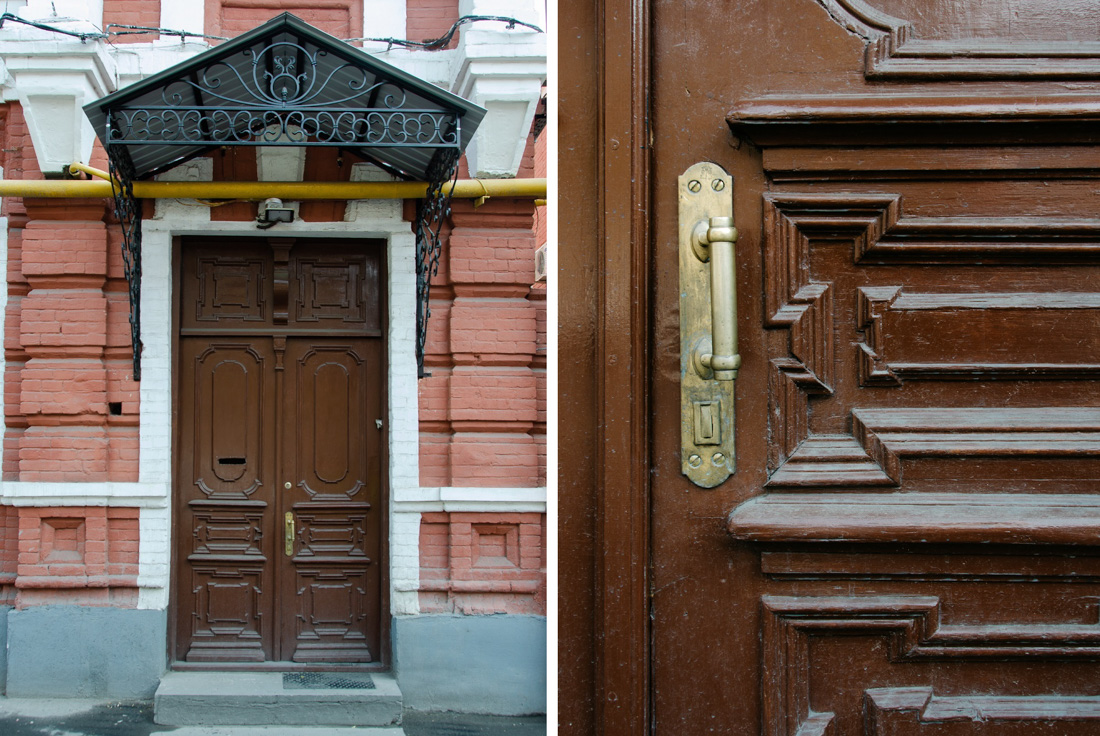 "За входной дверью со стороны фасада две квартиры, живем мы и наши соседи. В доме есть еще жильцы, у них вход со двора. На момент начала капитального ремонта наши двери потеряли свой вид, одна из створок застряла и не двигалась. По смете предлагалось установить обычную железную дверь. Мы посмотрели, как это выглядит на примере соседнего дома. Выглядело ужасно — просто тонкий лист металла бледно-серого цвета.