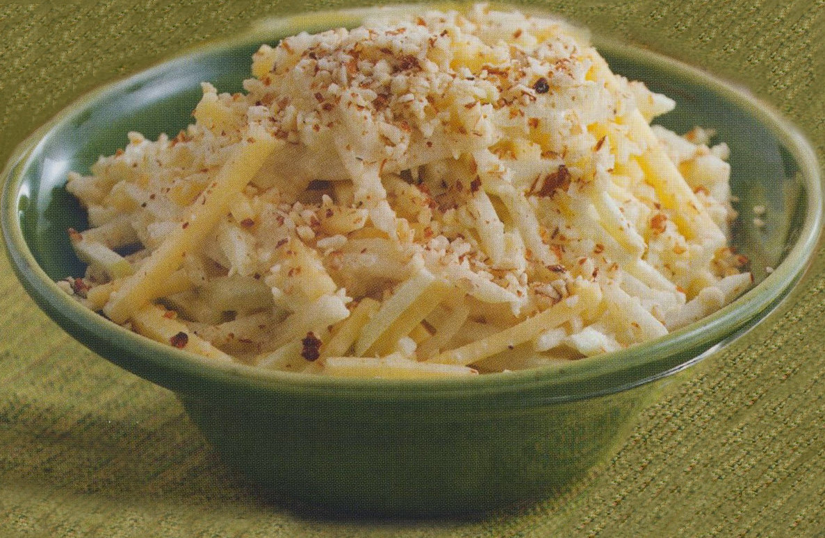 В оригинальном рецепте этого салата используют майонез, но , во имя здоровья и стройной фигуры, мы заменили его на нежирную сметану. Готовим Яблоко, грушу и сыр нарезать соломкой Миндаль измельчить и все смешать в миске. Сметану,горчицу,лимонный сок,соль и сахар взбить в отдельной посуде , добавить в миску и перемешать.