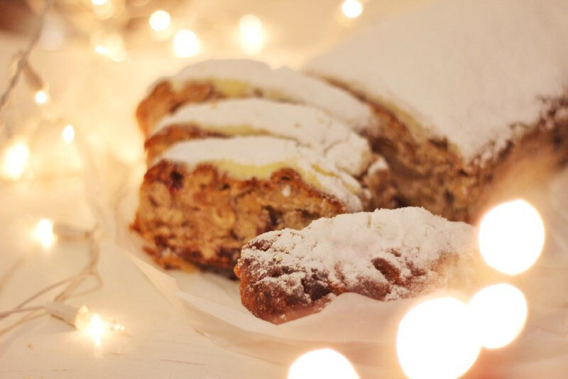 Приготовление штоллена мне очень напомнило то, как я готовила кулич а ля паннетонне на пасху. Они действительно чем-то похожи, но у штоллена совсем другая текстура и, как следствие, другой вкус. Он более плотный, насыщенный и невероятно сытный (хотя при пробе первого он ушёл влёт).
