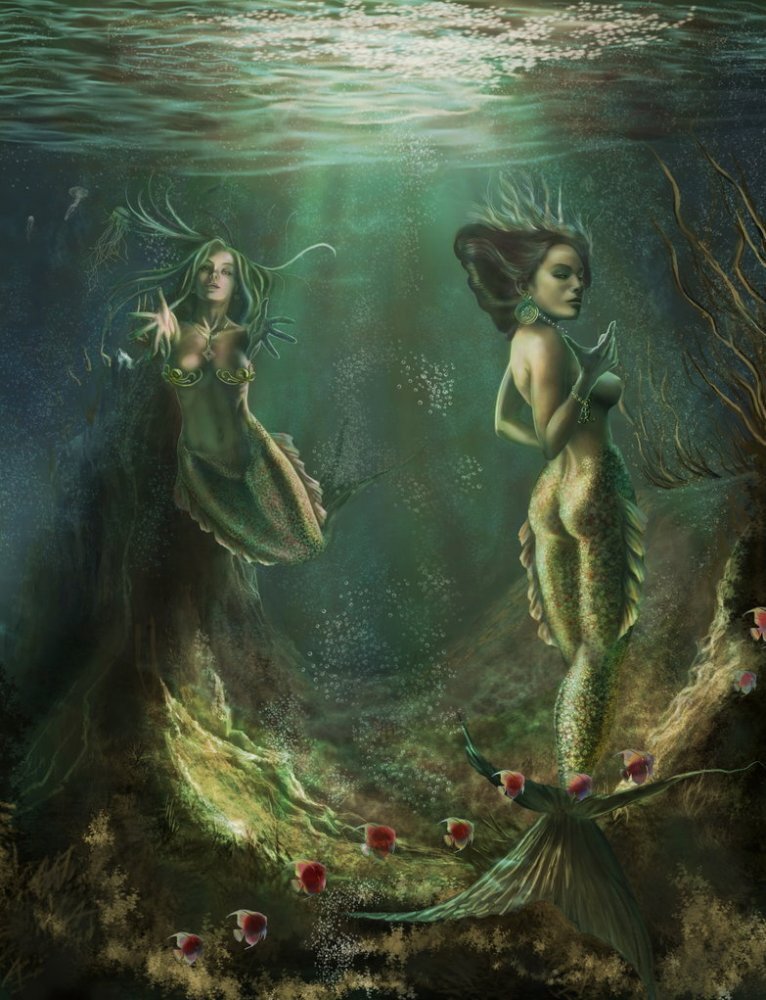 Очаровательный голос, манера, внешность и чарующий взгляд. Они смогут тебя заманить, а ты поплатишься за это. Первое упоминание о них гласит в "Одиссее" Гомера, где Сирены знали свою гибель, которая придёт тогда, когда они не смогу заманить морских путников. Так и произошло, Одиссей проплыл мимо, не поддавшись божественному пению, сумел избежать гибели благодаря воску в ушах, который залил себе и команде на корабле. Сирены приняли свою учесть и бросились в море, превратившись в утёсы. Они представляли собой демоническую сущность, верхняя часть женская, нижняя часть- птичья. Олицетворяли морскую поверхность, но коварную, под которой скрывались острые утёсы и мели. Они не всегда были полу женщинами, полу птицами, иногда приходилось обитать на морских скалах и обрели, тем самым, рыбий хвост. В рукописи упоминалось, что Сирен было трое: Пейсиноя, Аглаофа, Телксиепия. Им дано мощное превосходство над стихиями от отца и божественный голос от матери-музы. Их сущность должна была находиться