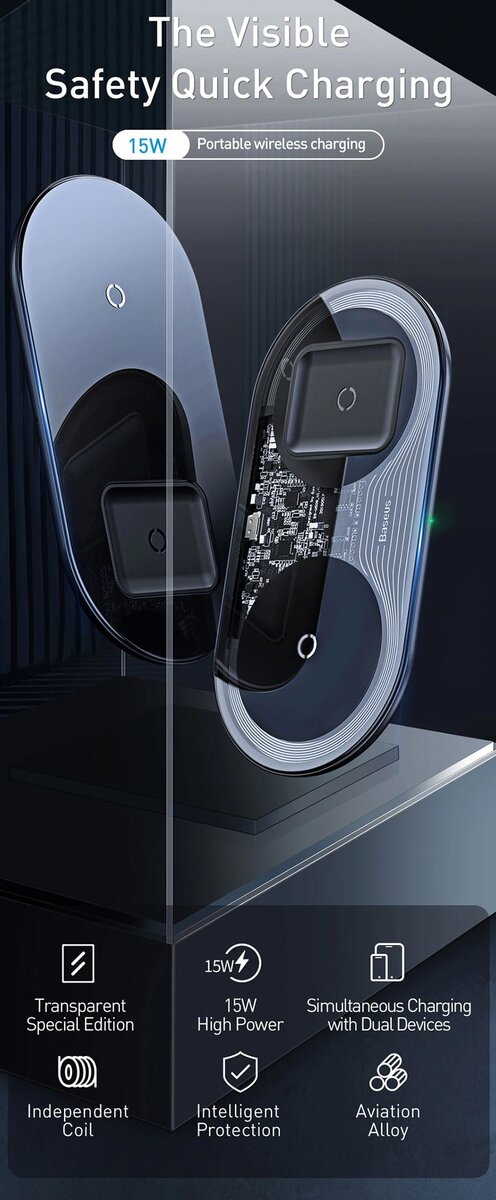 Беспроводная зарядка для телефона помогает продлить срок службы аккумулятора и уменьшить нагрузку на зарядный порт устройства. Кроме того, они более практичны: можно забыть о путающихся проводах, просто положив гаджет на зарядную панель. Мы расскажем о пяти лучших беспроводных зарядных устройствах, которые могут пригодиться в разных ситуациях. Зарядка для нескольких устройств сразу Разумным выбором в случае необходимости одновременной зарядки нескольких гаджетов станет беспроводная зарядка 2 в 1. Благодаря компактности и малому весу, модель удобно использовать как дома, так и на работе в офисе. Особенности Baseus Simple 2 in 1: Если активно используются сразу три гаджета, лучше всего подойдет беспроводная зарядка 3 в 1. Это устройство отлично подойдет и поклонникам продукции Apple, которые смогут выставить на одновременную зарядку свою коллекцию девайсов: iPhone, наушники AirPods и умные часы Apple Watch. Особенности Baseus Smart 3 in 1: Вертикальная зарядка Вертикальная заряд