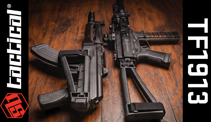SB Tactical выпустили универсальный фиксированный приклад TF1913 "рамочной" треугольной формы типа стабилизирующего браслета на предплечье.
