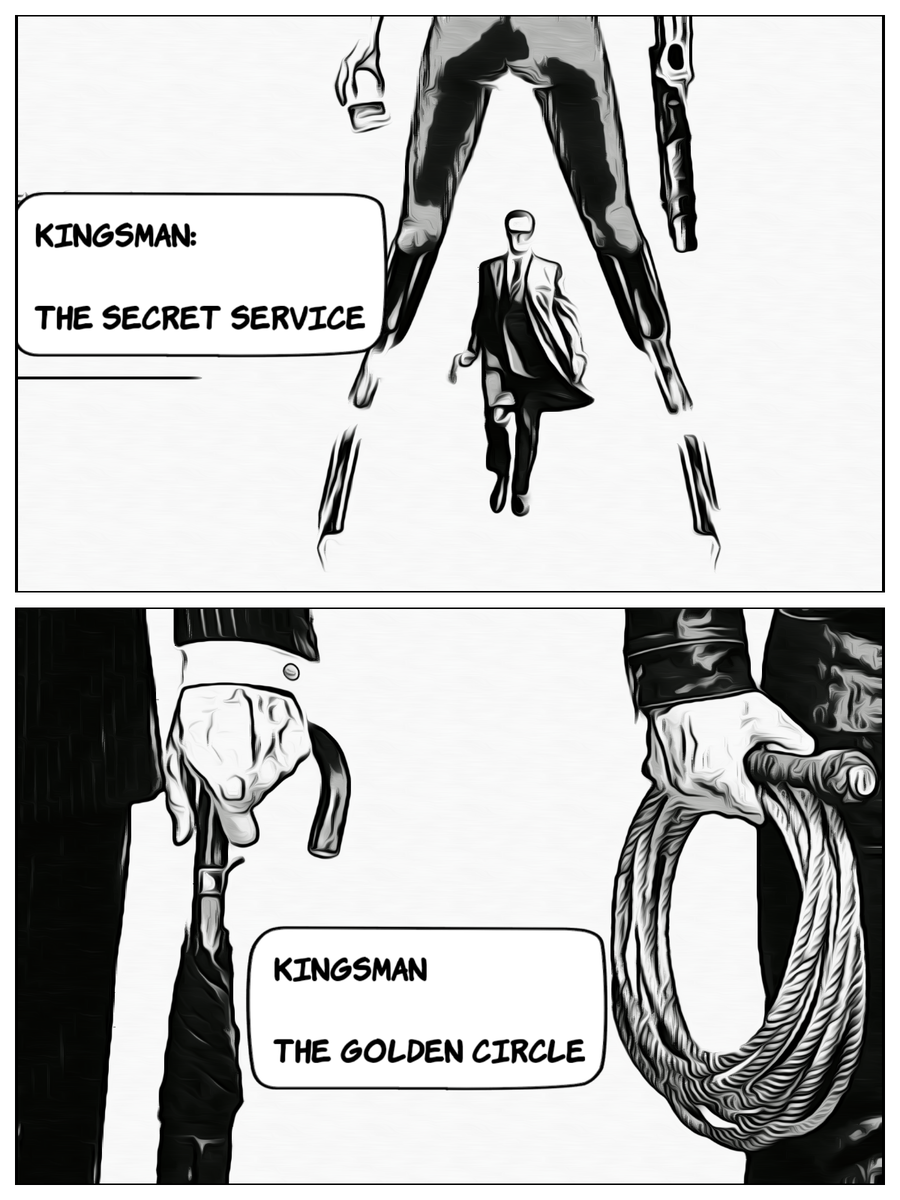 Фильмы, а их два, не запоминаются ничем, кроме прикольных костюмов и отсылок к бондиане. Джетпак и телефон в ботинке присутствуют. Сюжет в фильмах в принципе только для того, чтобы показать крутых английских парней в костюмах от H. Huntsman & Sons с тактическим щитом из зонта Swaine Adeney и пулеметом из чемодана Louis Vuitton.
