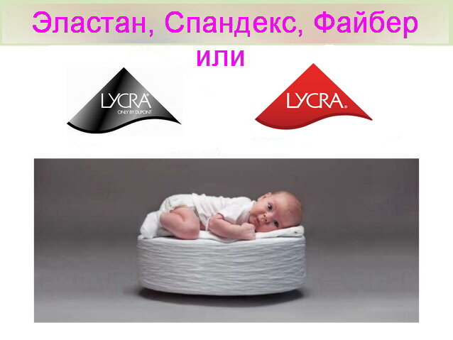 - Lycra - это не только синтетический продукт из волокон спандекса (эластана) компании DuPont, созданный и зарегистрированный в 1950-е гг., но также Lycra® - товарный знак и торговая марка (бренд) компании DuPont.