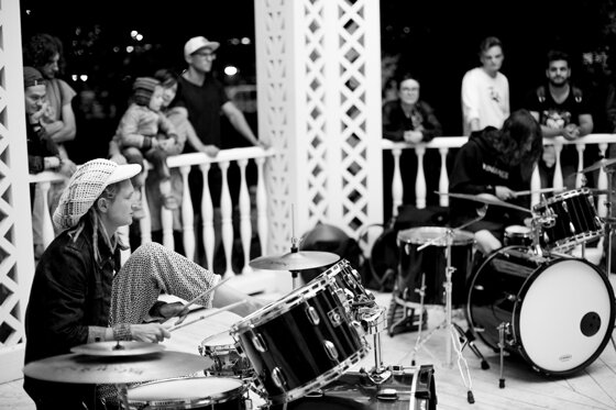 Альбом "Drumazhur" был записан в 2018-м году в Ажурной беседке Парка Горького и стал спонтанным опытом свободной импровизации четырех непохожих по стилю ударников: Оксана Григорьева, Петр Отоцкий, Андрей Ким и Сергей Болотин играли без предварительно оговоренного сценария, руководствуясь интуицией и силой момента. Концерт длился полтора часа, и в середине его, когда накал страстей приблизился к пиковому уровню, к ударникам присоединилась горячая саксофонная троица: Сергей Храмцевич (альт-саксофон), Александр Сереченко (баритон-саксофон) и Ирина Качан (альт-саксофон). И вот эти полчаса феерии четырех барабанов и трех саксофонов, когда амплитуда звучания проходит сквозь ураганный импров, а потом вдруг минуте к пятнадцатой выруливает на горячий ухабистый джаз-фанк, - едва ли не лучшее, что я слушал в этом году.