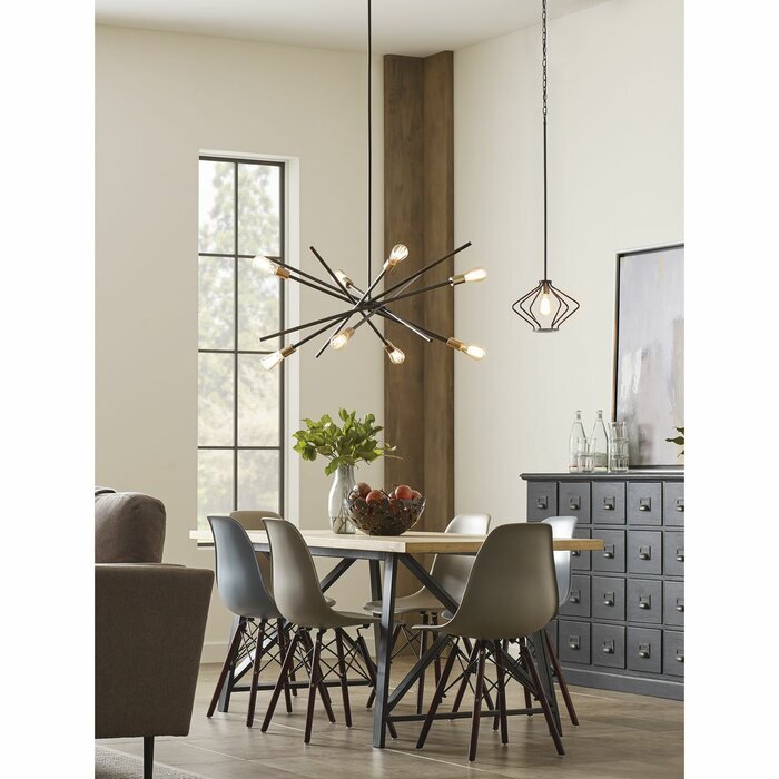 Еще один стильный вариант современной люстры в стиле «спутник» С этим культовым асимметричным дизайном и тонкими лампочками это прибор идеально будет смотреться над обеденным столом или в прихожей.