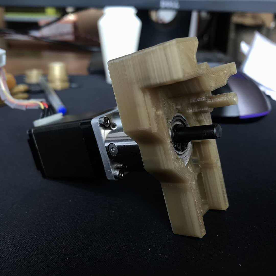 Мы нашли выход - печатать некоторые детали из PEKK. Благодаря своим свойствам этот материал может в какой-то мере заменить алюминий. Этого вполне достаточно, чтобы протестировать и испытать деталь. Например, прототип основания экструдера.