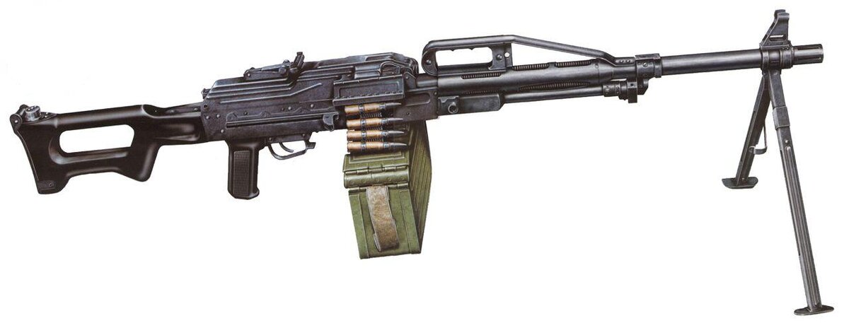 Краткая экскурсия в историю В конце 90 годов армии потребовалось, чтобы на смену базовому ПКМ пришло более модернизированное изделие. В итоге в Климовском ЦНИИ ТочМаш по программе «Печенег» был спроектирован новый, более модернизированный — пулемёт Калашникова, пехотный (ПКП). В 1999 г. Производство было налажено на Ковровском заводе им. Дегтярёва. Изменения коснулись в основном ствола пулемёта. Система работы автоматики, боепитания пулемёта, устройство ствольной коробки остались в ПКП неизменными. Однако не лишним будет напомнить некоторые технические подробности: Тактико-техническое описание Изменения и доработки У ПКП на газоотводной трубке расположен газовый регулятор, который позволяет регулировать количество газа, поступающего в пулемёт. Это необходимо, чтобы пулемёт более качественно работал в случае, если он сильно загрязнён, или если пулемётчик находится в горах. Модернизированный ПКП стал на порядок точнее, к тому же пулемётчик избавился от потребности менять ствол после