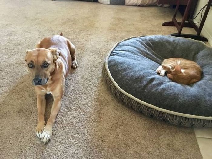 Кто лучше: кошки или собаки? Вечный вопрос! Кошки, не долго думая, берут дело в свои маленькие лапки и захватывают собачьи лежанки без зазрения совести. Ну а что остается собачкам? Только мирно ждать, когда их место освободят и жалобно просить помощи у хозяев. Вы только посмотрите в эти глаза:) Кого вы любите больше? Делитесь своим мнением в комментариях:) ___________________________ - Ставьте лайки - Подписывайтесь на канал, тут много всего интересного