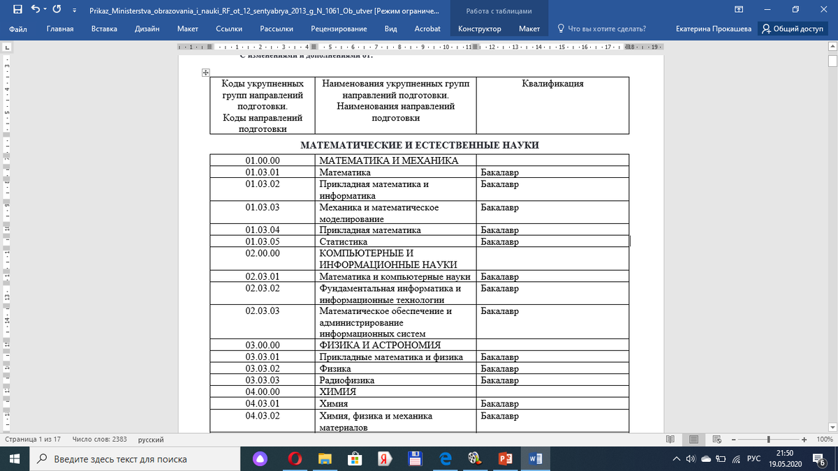 направлений подготовки высшего образования - специалитета" (утверждены приказом Министерства образования и науки РФ от 12 сентября 2013 г. N 1061) Заходи на са