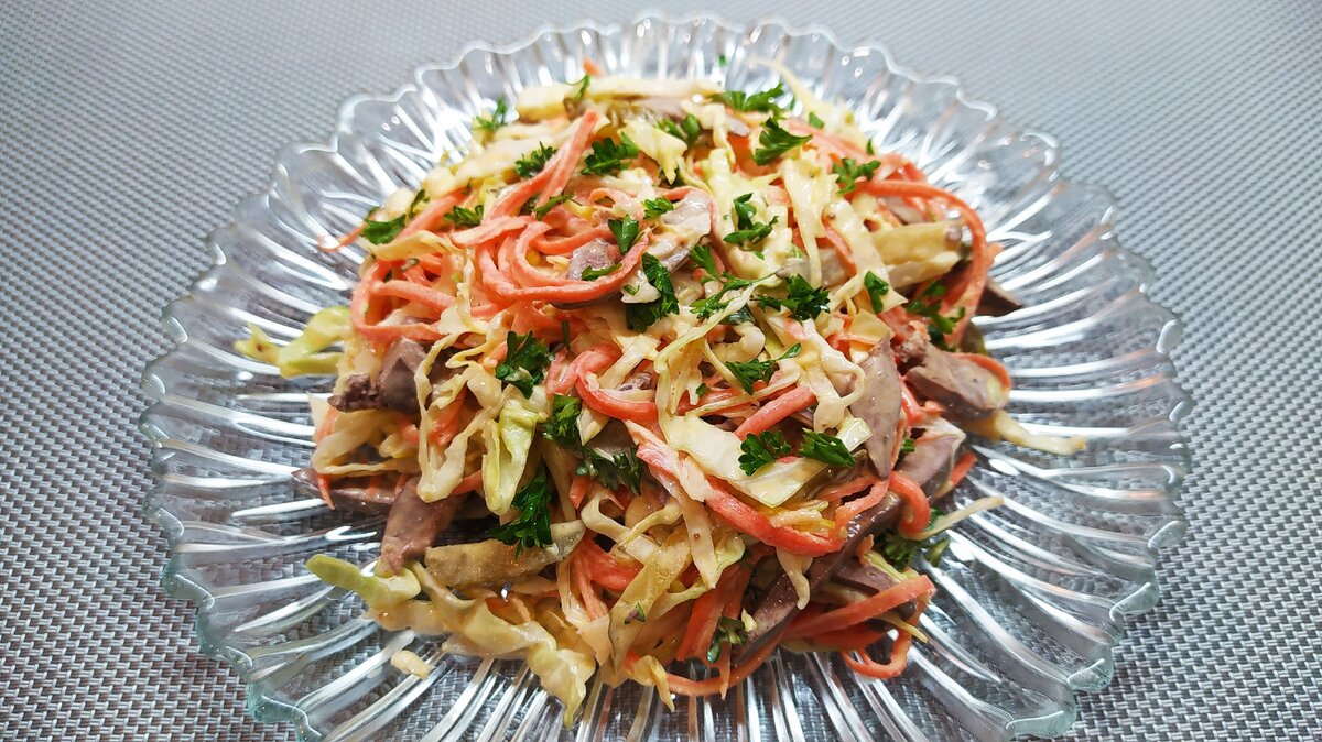Сегодня хочу поделится с вами одним необычным рецептом очень вкусного салата. Этот салат понравится всем, даже тем кто не особо любит печенку(проверенно) Здесь она имеет совершенно иной вкус и прекрасно гармонирует со всеми овощами.