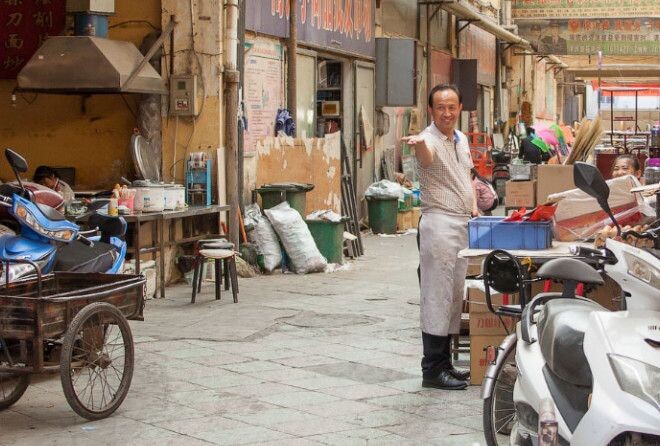 Рынок мы нашли случайно в небольшом китайском городке Увей провинции Ганьсу. Прогуливаясь мимо шикарных магазинов, свернули в подворотню и окунулись в царство насыщенных запахов и звуков. Первое что поразило — открытость и позитивность людей. При видя двух довольно больших фотокамер, народ активно улыбался. Второе — полнейшая (на наш взгляд) антисанитария. Но при этом, мух и вони нет. Сам рынок состоит из двух длинных коридоров. В одном продают мясо и тут же его готовят, в другом продают специи и зелень.