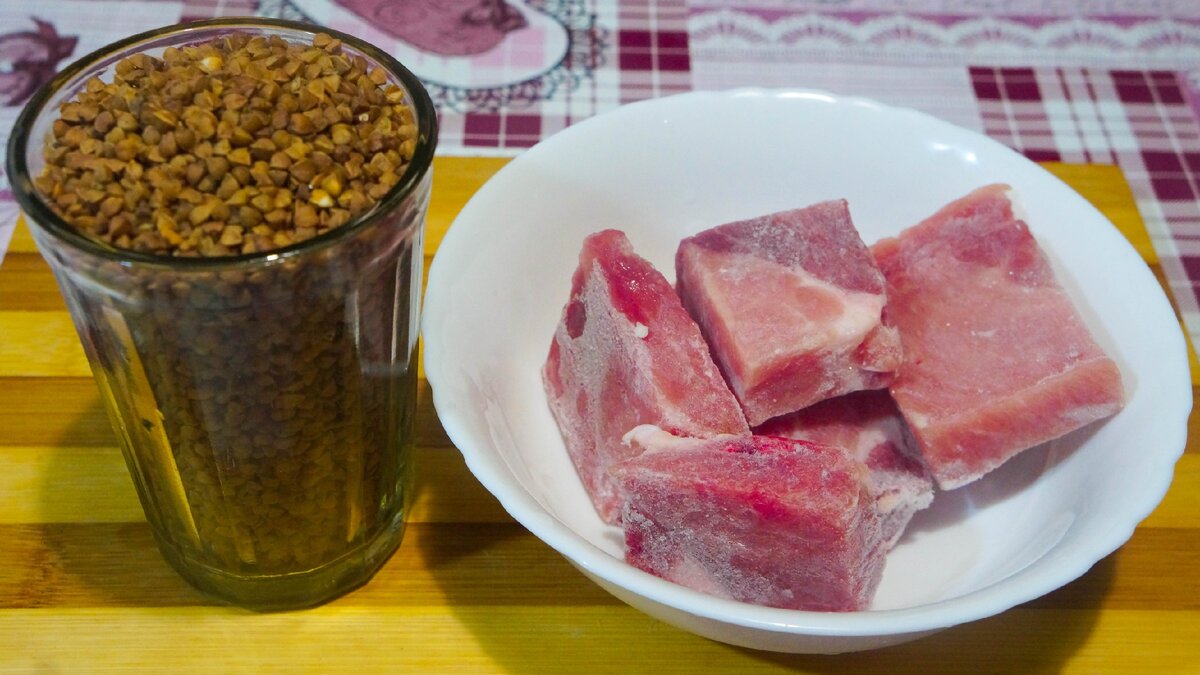 Всем привет. У нас есть 2 стакана гречневой крупы и 300 грамм мяса, что из этого можно приготовить? Ну, конечно же гречневую кашу с мясом. Но даже это простое блюдо можно приготовить по-разному. Сегодня я вам покажу свой вариант гречки с мясом. Какая же вкусная она получается. Вы не заметите, как съедите всё до последней ложки.